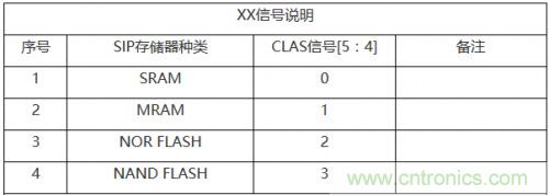 每一種SIP存儲器對應于一個特定的ABUS接口IP核,以實現正確的時序讀寫操作。這個IP核有一個統一的接口約定,都是由兩個固定的接口構成,其中與NIOSII連接的是外部總線接口,其操作按照NIOSII的外部總線時序規范來實現,另一個接口就是上文提及的ABUS接口,在相應的CLAS信號有效的情況下,它負責把NIOSII的外部總線讀寫時序轉換成對應存儲器芯片的時序。IP核的工作就是完成這些讀寫操作的轉換。表5是各種SIP存儲器對應的類別信(CLAS)號輸入值,在設計接口轉接板時要按這個值設定,ABUS才會切換出正確的讀寫時序。