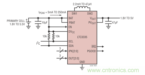 圖 2:簡化的 LTC3335 應用原理圖