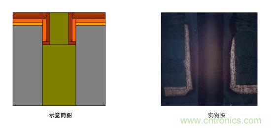 (1)整板板電銅薄孔無銅―――表銅及孔銅板電層都很薄,經圖電前處理微蝕后孔中間大部分板電銅都被蝕掉,圖電后被圖電層包住;