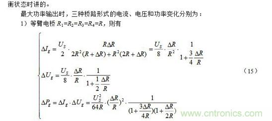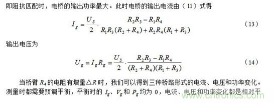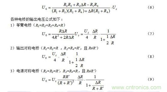 注意:上面(7)~(9)式中的R和其R′ 均為預調平衡后的電阻。此外,當電阻增量△R較小時,即滿足△R《《R時,上面(7)~(9)三式的分母中含△R項可略去,公式可得以簡化,這里從略。