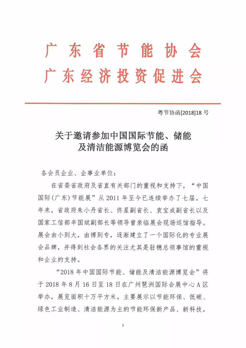 【通知】關于邀請參加中國國際節能、儲能 及清潔能源博覽會的函