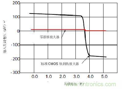 圖2.CMOS和零漂移輸入失調電壓比較