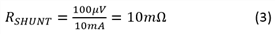 在這兩種情況下,為了利用已知阻值的電阻來感應電流,通過運算放大器來測量分流電阻兩端的電壓。運用歐姆定律(公式1),可以確定電流消耗: