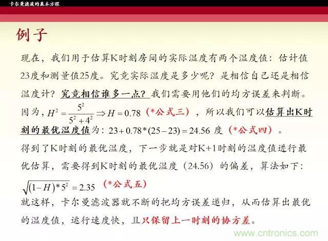 【導(dǎo)讀】卡爾曼濾波器是一種由卡爾曼(Kalman)提出的用于時變線性系統(tǒng)的遞歸濾波器。這個系統(tǒng)可用包含正交狀態(tài)變量的微分方程模型來描述,這種濾波器是將過去的測量估計誤差合并到新的測量誤差中來估計將來的誤差。接下來的五張圖帶你了解卡爾曼濾波器的基本思路和公式。