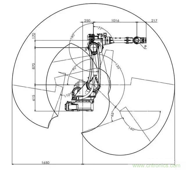 工業(yè)機器人手臂或手部安裝點所能達到的所有空間范圍。