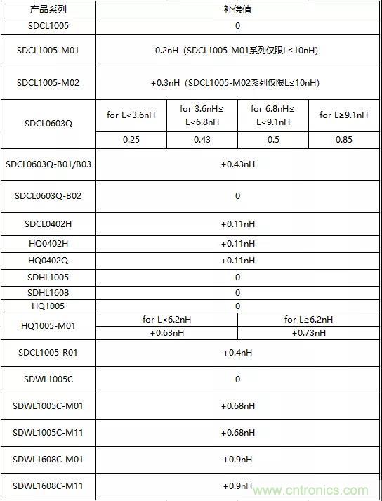 順絡電子射頻電感補償值