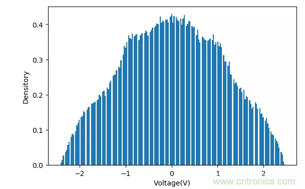 使用示波器采集上面隨機噪聲信號280k個數值,發送到計算機。統計它們的直方圖分布如下圖所示。