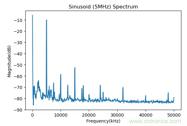 它的頻率分量從低頻一直擴展到30MHz左右,絕大多數的信號分量集中在10Mhz以內。