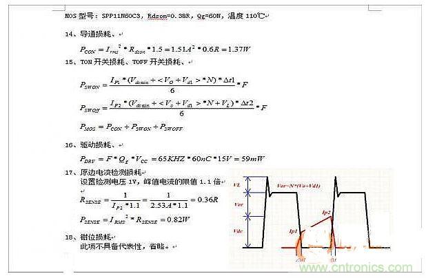 (關于開關損耗和導通損耗,上面的計算方法應該是正確的,參考《精通開關電源》第5章。最有可能會出現的問題是,測量的準確性如何,因為這會導致計算值與實際值相差2--5倍。)