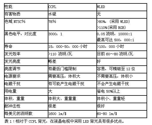 顯然,CCFL背光是不可能實現這種區域亮度控制的,一方面是因為CCFL的形狀是長條形,根本無法按屏幕分成20個等份的區域;另一方面則是因為它的亮度也不可能按照圖象的內容進行快速調整。不過,在采用LED作為區域亮度控制時,只能采用直下式背光,而不能采用側射式。