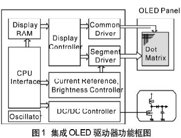 一個高度集成的OLED驅動/控制器IC包含行、列驅動、DC-DC轉換、時序控制、顯示內存和MCU接口電路,對OLED模塊廠商來說,提供了一個用在移動設備上的簡明方案。不僅如此,軟件工程師也可以通過使用內建的圖形控制器功能來節省手機開發的時間(如圖1所示)。