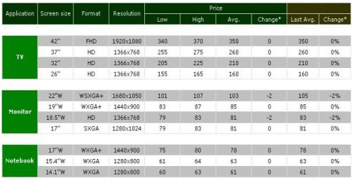 其中監(jiān)視器面板需求在下游客戶需求減少的情況下,16:9產(chǎn)品面板價格將有所修正,但整體庫存仍在可控制范圍內(nèi),因此本月價格的修正將視為合理的調(diào)整,預(yù)估16:9面板的跌幅在5美元以內(nèi)震蕩。