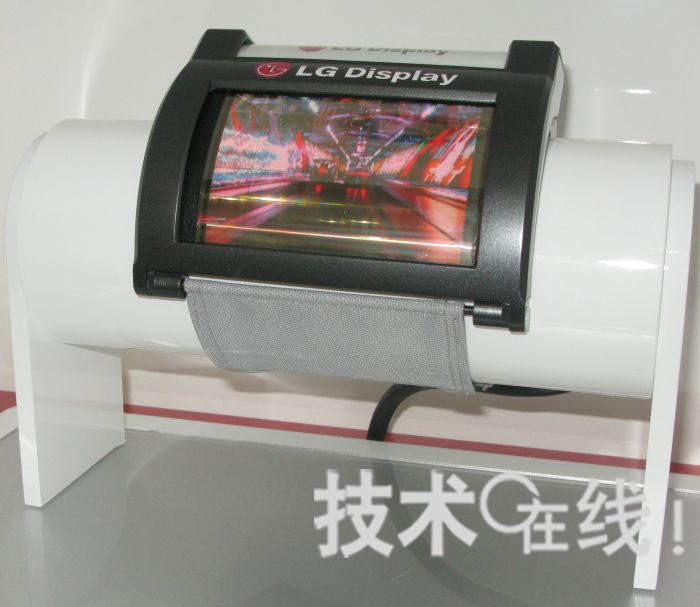 韓國LG顯示器在顯示器相關(guān)展會“FPD International 2009”(10月28~30日,太平洋橫濱會展中心)上,展出了可彎曲戴在手腕上的柔性有機EL顯示器。此為該公司在學(xué)會“SID 2009”上,于美國環(huán)宇顯示技術(shù)(UDC)展位公開過的柔性有機EL顯示器更新版。