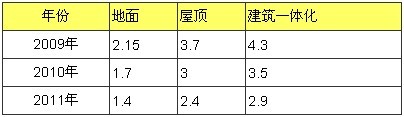 與此同時的各地政府也紛紛出臺政策刺激光伏電站的發(fā)展,杭州市提出“陽光屋頂”計(jì)劃,廣州,南昌,無錫,保定,上海紛紛提出了本地的光伏電站發(fā)展規(guī)劃,中國光伏最發(fā)達(dá)的江蘇省率先出臺了《太陽能光電建筑應(yīng)用財政補(bǔ)助資金管理暫行辦法》,其中規(guī)定,通過3年努力,力爭在全省建成光伏并網(wǎng)發(fā)電裝機(jī)容量400兆瓦,2009-2011年分年度目標(biāo)電價為: