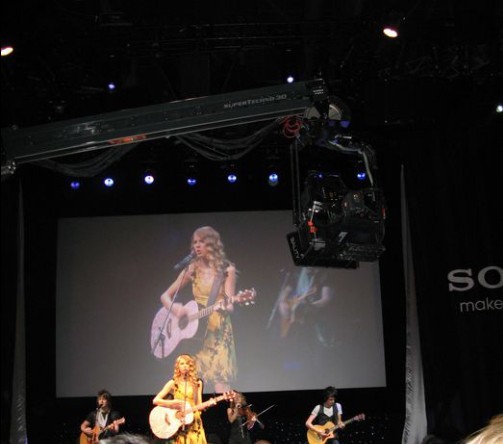 索尼董事長兼社長兼CEO霍華德·斯金格在兼作發(fā)布會現(xiàn)場的索尼展位上如此宣言之后,在美國備受年輕人歡迎的歌手Taylor Swift走上舞臺。會場上用能夠拍攝三維(3D)影像的專業(yè)攝像機(jī)拍攝了Swift的現(xiàn)場演奏,并在會場的屏幕上進(jìn)行了3D現(xiàn)場直播。佩戴著3D影像用眼鏡的觀眾同時觀看了現(xiàn)場表演和3D影像。