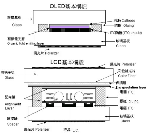 OLED 屏幕與LCD屏幕構(gòu)造對比