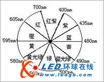 為對光的色學(xué)性質(zhì)研究方便,將可見光譜圍成一個圓環(huán),并分成九個區(qū)域(見圖),稱之為顏色環(huán)。