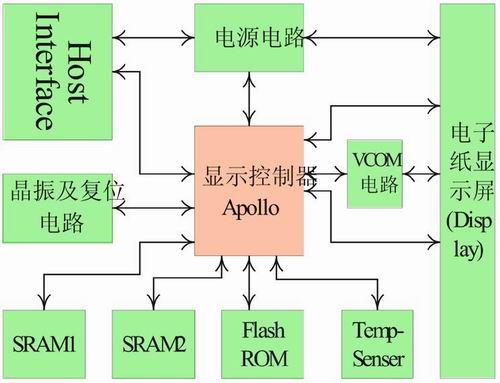顯示控制器Apollo芯片是NXP公司開發的一種TFT(thinfilmtransistor,薄膜晶體管)主動矩陣(activematrix)電泳(Electrophoretic)顯示的顯示控制器,是電泳顯示參考系統電子設計的一部分。Apollo芯片適合800X600像素,支持1-bit和2-bit顯示。屏幕高寬比(aspectratio)為4:3,同時驅動源極驅動(sourcedriver)和柵極驅動(gatedriver);支持握手協議的8位并行雙向異步數據總線接口,主接口最大通信速率是10Mbytes/s。