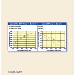 因此,提高熱/冷因數(shù)能顯著提高運(yùn)行在更高結(jié)溫下的LED性能,可以用更少的LED獲得同樣的光輸出,以降低功耗和系統(tǒng)整體成本。為一個(gè)特定應(yīng)用選擇LED時(shí)候,重要的是要評估真實(shí)條件下的LED表現(xiàn),而不是只依靠數(shù)據(jù)表。