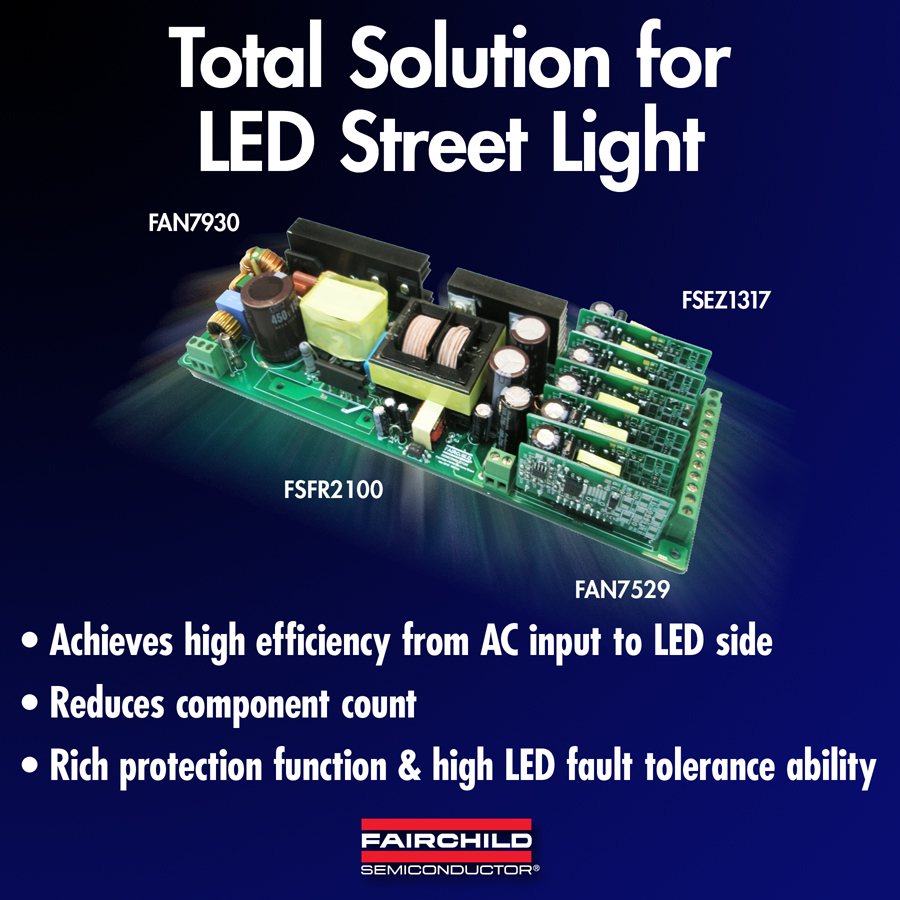 • 飛兆半導體公司開發出一款完整的LED路燈照明解決方案