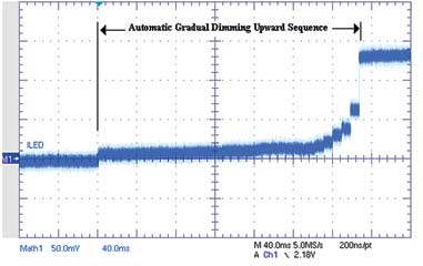 圖7典型的NCP5623自動向上漸進調光過程(每級8ms)