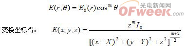 LED的光強分布不是一個理想的余弦分布,該分布可以表示為: