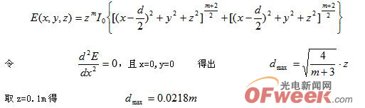 由于LED是一種非相干光源,因此兩個LED對平面上某一區域的光照度為其單個的疊加(多個LED同理疊加),則有(式中d為兩個LED之間的距離)