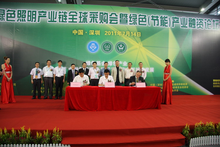 2011年7月14日,中國(深圳)國際節能減排和新能源科技成果產業化及投融資博覽會在深圳會展中心開幕舉行。作為節博會的協辦單位,廣東綠色產業投資基金攜旗下EMC聯盟、中能綠色基金主辦的《中國綠色照明產業鏈國際采購會暨綠色(節能)產業融資論壇》于同日開幕,為參展企業帶來包括LED燈具在內的節能產品上下游有關材料共2500億的訂單。