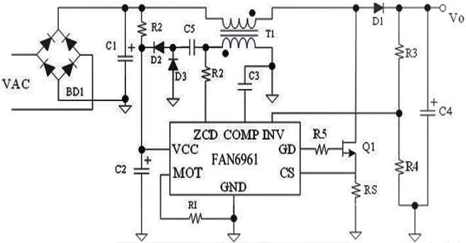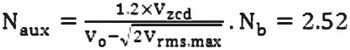 Boost變換器的控制芯片為FAN6961,需要一輔助繞組,根據FAN6961的使用說明可知其匝數由式(5)決定: