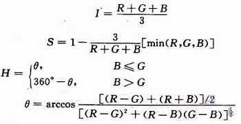RGB模型面向電路,而HSI模型與人的顏色感知一一對應,所以需要通過RGB模型完成到HSI模型的轉換: