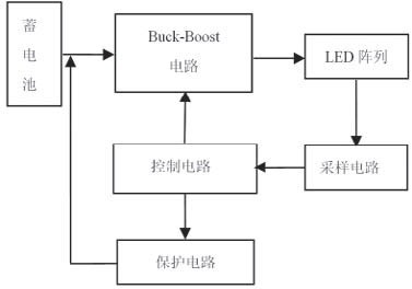 圖2 可知,Buck-Boost 電路將蓄電池電能變換后對LED 陣列供電,采樣電路對流過LED 的電流采樣,將信號傳到控制電路。控制電路分析采樣信息,調節Buck-Boost 電路中開關管的占空比,保證通過LED 電流恒定;當電路出現異常時,通過控制保護電路切斷電源,保證LED 不受損害。一般情況下,LED 驅動電路必須滿足下列要求: