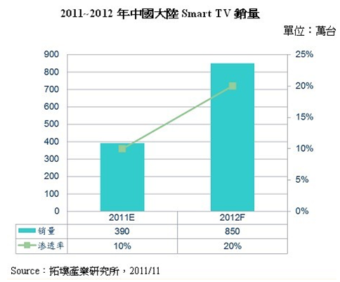 - 2012年中國大陸Smart TV銷售量將達850萬臺