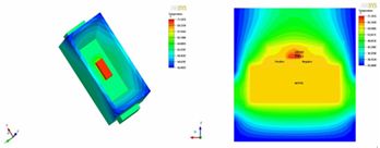 圖6.水平散熱結(jié)構(gòu)LED熱模擬溫度分布圖