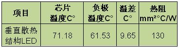 表3.垂直散熱結(jié)構(gòu)LED熱模擬結(jié)果(25mA)