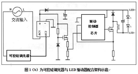 所以它是LED照明常用方法,見圖1(b)所示可控硅調(diào)光器與LED驅(qū)動(dòng)器配合架構(gòu)示意。