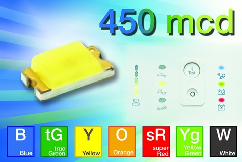 VLMx1300系列中的所有LED都安裝在1.6 mm x 0.8 mm x 0.55 mm的高可靠PCB板上,具有130°的極寬視角。顏色包括大紅、淺橙色、黃色、黃綠色、純綠色、藍(lán)色和白色。這些彩色LED使用超亮的AllnGaP和InGaN技術(shù)(根據(jù)顏色采用不同的技術(shù)),在20mA正向電流和最高3.8V的正向電壓下,發(fā)光強(qiáng)度高達(dá)450mcd。藍(lán)色LED具有一個(gè)ESD防護(hù)能力高達(dá)8000V的保護(hù)二極管。在5mA正向電流和3.15V的最高正向電壓下,白色LED的最高發(fā)光強(qiáng)度達(dá)180mcd。下表列出了各個(gè)型號(hào)的性能特性。
