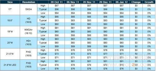 DisplaySearch公布的液晶面板報價