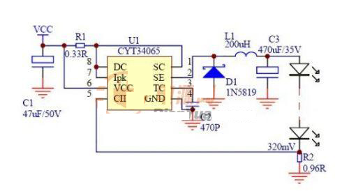 CYT34065是在CYT34063基礎上,改進設計而派生的LED驅動器。CYT34065繼續保留CYT34063優秀的特點外,并且還能高效率的驅動LED。CYT34065是專門為LED大功率而設計的一款直流驅動器,可選擇升壓、或降壓應用,最大輸出典型值1A,效率高達85%以上。 蓄電池直流應用設計場所中CYT34065有著較高的性價比,高可靠性、穩定性高,恒流效果極佳。