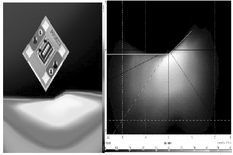 近年來,高亮度LED 技術發展迅猛。截至2008年,歐司朗光電半導體公司推出新款OSTARHeadlamp LED,OSTAR Headlamp LED 產生的光通量,依照串聯的芯片數量而定, 介于700mA 時的125 lm ( 單芯片) 與1A 時的1000 lm ( 五芯片) 之間,可達到前照燈需要的亮度要求。高精度的工程設計、內置光閘功能、最佳的芯片安裝和封裝設計,讓OSTAR Headlamp LED 具有全新的亮度數據和精確的燈光明暗截止線,適用于所有前照燈設計( 見圖7)。