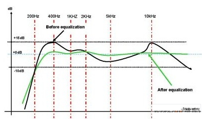 圖示均衡可以用來彌補由于小型揚聲器、機箱諧振等引起的音頻問題,但它不是最好的方法,因為頻段的寬度和頻率是固定的。
