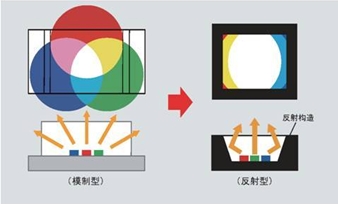 - 業界最小的反射器型3色LED