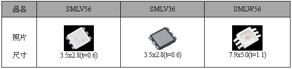 羅姆除此次的“MSL0301/0401RGBW”以外,還為客戶提供反射型3色發光貼片LED。
