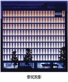 于2010年整體煥然一新的羅姆日本京都站前大樓景觀燈,整座大樓采用羅姆自產的LED照明等產品。大樓正面的墻面縱橫組合安裝了羅姆生產的全彩LED和可進行色溫微細調整的LED模塊,實現了如同透過紙窗一樣的柔和光線。該設計根據季節對色溫進行微妙的調整,表達了日本細膩的季節感,與京都街道風格融為一體。