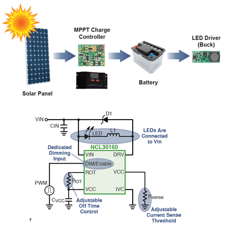 NCL30051與NCP30160IC在一起搭配工作,可以最少的外部元件簡化電源電路設計。這種架構使芯片組能夠集成在更緊湊及更高性價比的LED照明電源中,用于戶外照明(如LED路牌、街燈、停車場燈)等通用照明應用。
