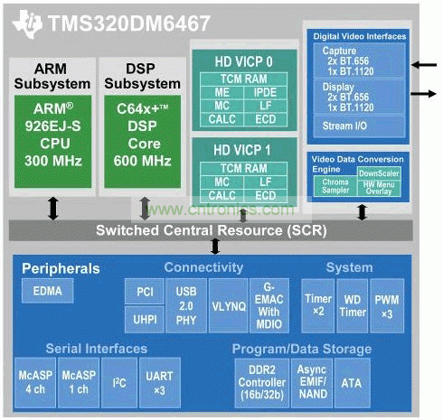 圖 3. 基于達芬奇技術的 TMS320DM6467 數字媒體處理器方框圖
