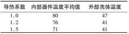( 3) 灌膠導熱系數(shù)對驅(qū)動電源散熱影響情況,由于電源的殼體結(jié)構(gòu)已經(jīng)確定,因此驅(qū)動電源的散熱主要通過膠體傳導,將熱量傳導到殼體,而后通過對流散熱。表1 是導熱系數(shù)不同的膠體的電源器件和殼體溫度情況( 輸入電壓~ 100 V,輸出48 V/3 A,環(huán)境溫度25 ℃) .