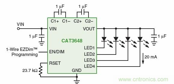 針對(duì)手機(jī)等便攜設(shè)備的LCD背光應(yīng)用,安森美半導(dǎo)體提供多款簡(jiǎn)單線性白光LED驅(qū)動(dòng)器。它采用單線式EZDim接口調(diào)光,有32級(jí)調(diào)光控制;25 mA固定電流(B版本)或可調(diào)節(jié)電流(A版本)。這些單模LED驅(qū)動(dòng)器可作為系統(tǒng)級(jí)的一部分,用于設(shè)計(jì)整合低電壓LED和簡(jiǎn)單LED驅(qū)動(dòng)器的背光電路。