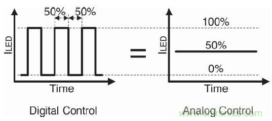 這種ON/OFF 數(shù)字控制稱之為脈寬調制(PWM)控制,或者PWM調光。現(xiàn)將PWM控制開關添加至圖2。