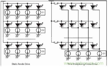 圖 8.靜態(tài)陽極驅動器與時分復用陽極驅動器