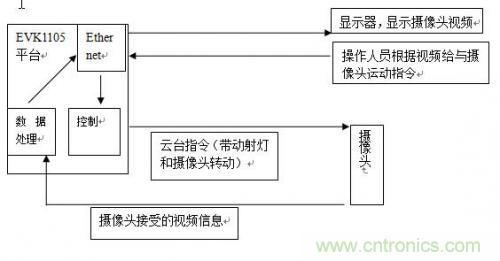拓展:通過以太網遠程傳輸數據,另操作人員通過觀看攝像頭的現場視頻,實時操控攝像頭和燈光投射方向。